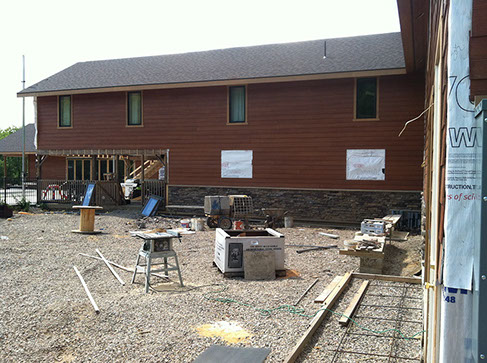 The second phase of the project involved the new construction of a master bedroom suite including a new bathroom and closet. In addition, a new living room was added with a grand fireplace. A new entry was located adjacent to the living room with a grand staircase up to the second floor.