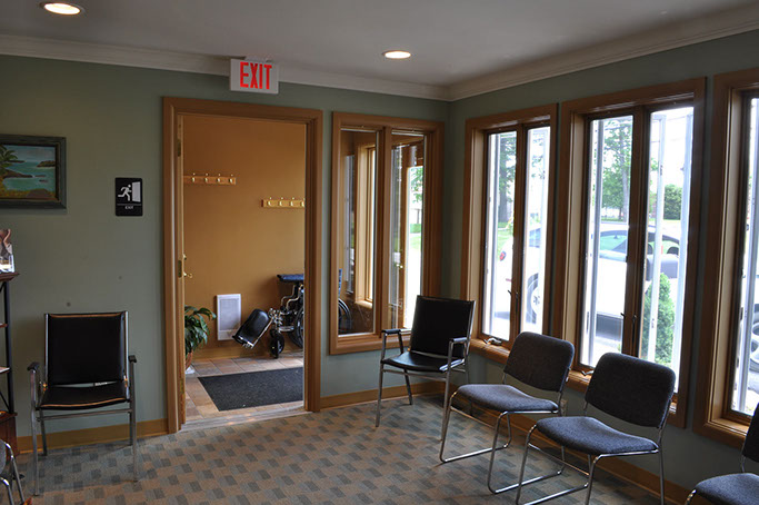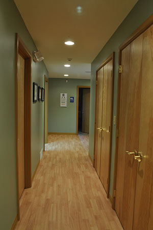 One handicapped accessible exit was required. This meant that a level path of travel for exiting was designed into the medical office for patients who are wheelchair bound. A new parking lot was designed and an accessible sidewalk from the handicapped parking space to the main entrance was provided.