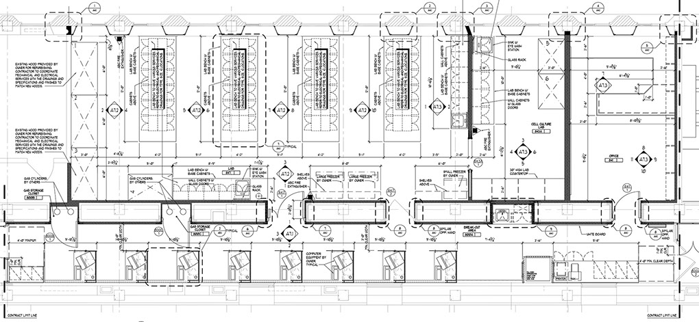 Project designer, project architect, and project manager involving the renovation of existing laboratory space in Mellon Institute, with a new 2,500sf, 7-hood, chemistry research laboratory. The project captured larger usable areas through the creation of research suites allowing the utilization of corridor for research use while meeting code requirements for exiting. This gained approximately 30% more space for the researcher to use for student workstations, flexible meeting/teaching space, and to help identify the suite architecturally.