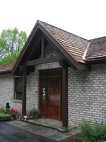 The second part of the project involved a new, covered entry between the renovated garage and the kitchen/dining area. The garage was extended to create a mudroom and the breakfast nook, and to allow access to the kitchen without opening directly into the kitchen. It also provided a more formal entry into the kitchen without the need to pass through the garage. Additionally, this increased storage potential within the garage.