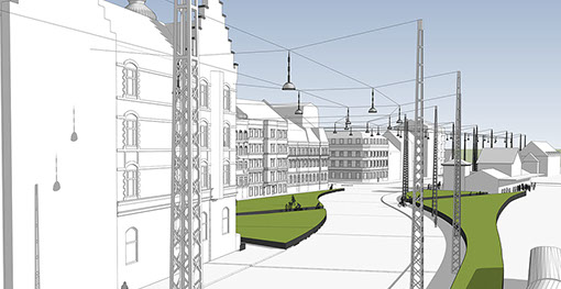 This project involved the design of an urban park for a small space sandwiched between a public thoroughfare and existing apartment buildings. The space is currently used as street parking. The design scheme implemented a level stylobate of turf grass that could be utilized by the neighborhood. The streets, sidewalks, and bicycle paths have East-West and North-South cross-slopes. While pathways cut through the park, their elevations drop while the level of the grassy field remains constant. This strengthens the park as an object separating it from its surrounding functions. Edges are reinforced by changes in elevation as well as a granite wall “lifting” it above the city’s everyday movement.