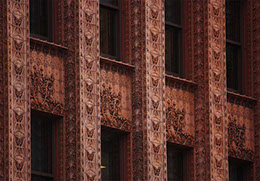 The structural expressionism found within the skin of the building is due to the scale and orientation of the vertical pilasters, the horizontal spandrels, and the individual windows between them. The rectilinear and highly regular pattern of columns and beams is clearly expressed through the skin/façade and this expression is read through the terra-cotta tiles. The structure lies completely within the limits of the skin. These hierarchical levels of organic ornament were based upon a transmogrification of inorganic to organic, and a filling-in of the spaces with ornament to make the ornament appear to grow in an organic manner. It was this hierarchical nature that led to the development of a system of structure that was also hierarchical. A primary structure that would be in-filled with finer and finer elements in a system of structure appearing to organically grow out of the local field condition of forces required to support the new programmatic requirements.